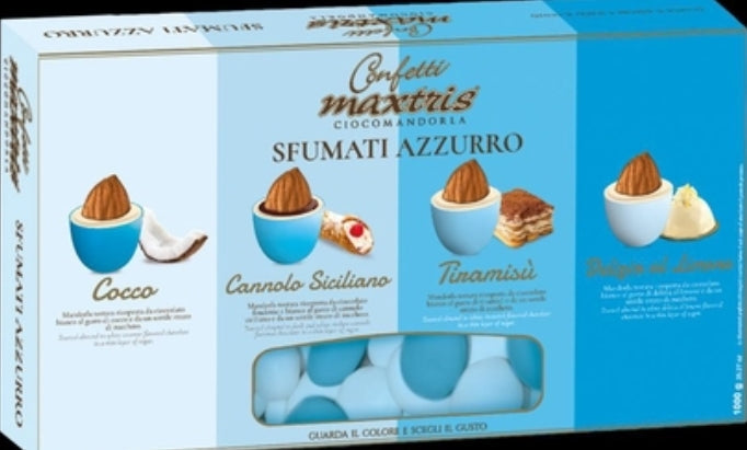 Toasted almond covered with a layer of white chocolate in assorted flavors (coconut, Sicilian cannolo, tiramisu and lemon delight) and a thin layer of sugar.
