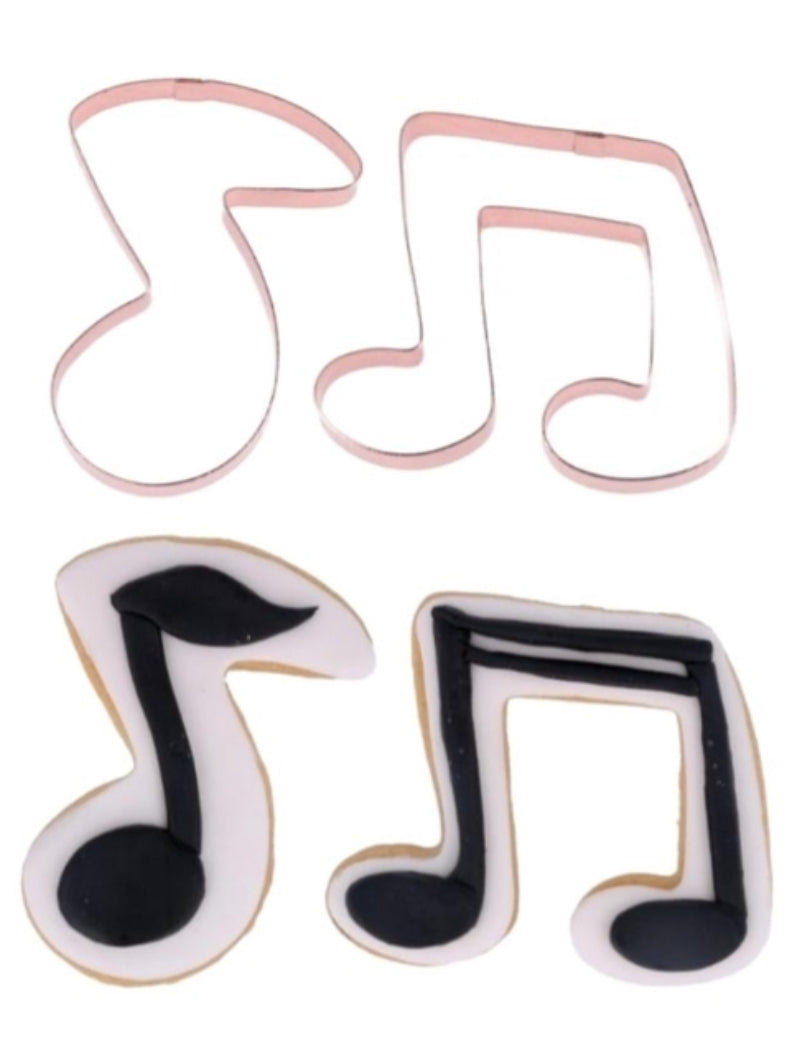 Details: Set of 2 cookie cutters to make music note shaped cookies, ideal for parties for young budding musicians and music lovers. Made of copper-plated steel.