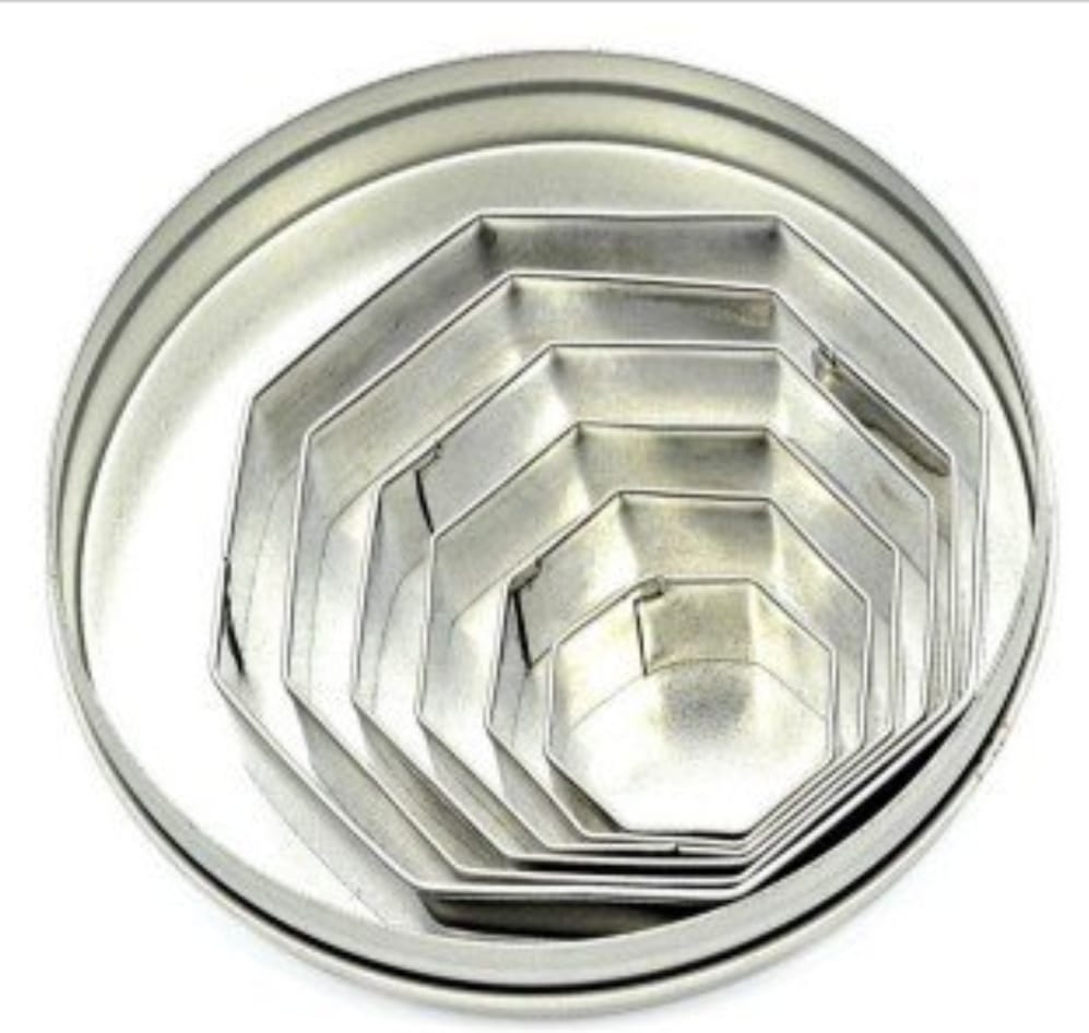 Details: Set of 6 stainless steel octagon shaped pastry cutters. Ideal for