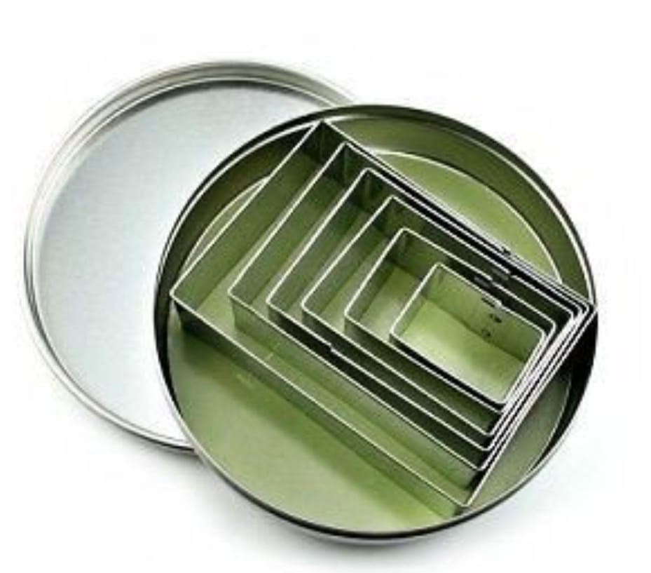 Details: Set of 6 stainless steel rectangle shaped pastry cutters. Ideal for