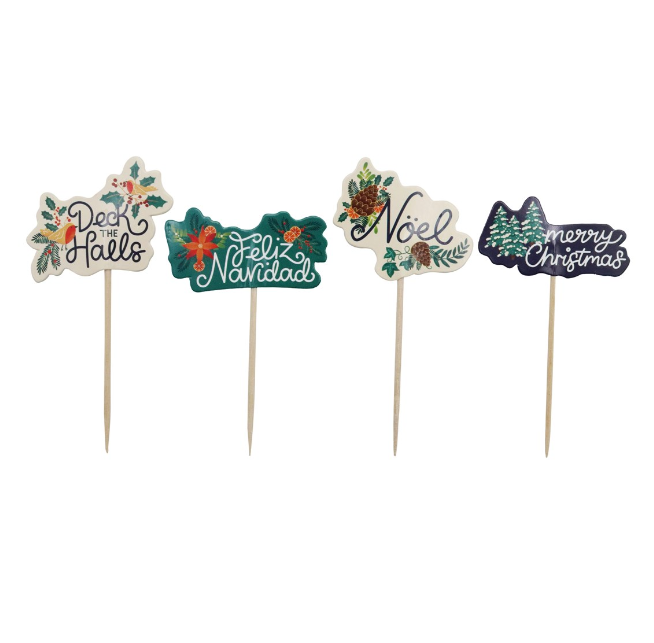 - Il set di 24 topper include 4 design, con frasi come Feliz Navidad, Noël e altro