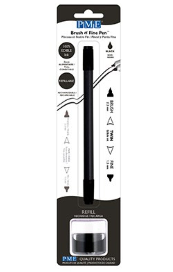 La gamma di penne a inchiostro commestibile Brush n Fine Pen offre uno spettro di colori che ti consente di creare dettagli complessi e messaggi personali per supporti commestibili come pasta di zucchero/fondente, pasta di gomma, fogli di zucchero, carta di riso, glassa reale essiccata, marzapane e molto altro ancora. .