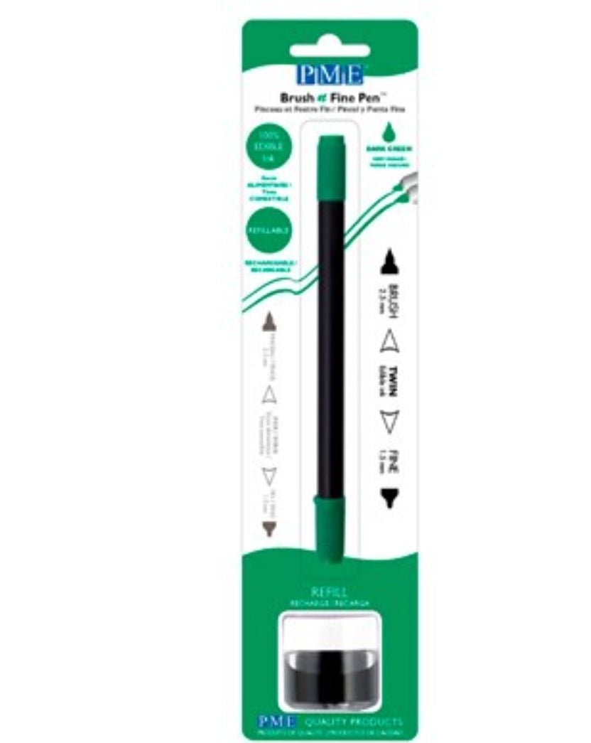 La gamma di penne a inchiostro commestibile Brush n Fine Pen offre uno spettro di colori che ti consente di creare dettagli complessi e messaggi personali per supporti commestibili come pasta di zucchero/fondente, pasta di gomma, fogli di zucchero, carta di riso, glassa reale essiccata, marzapane e molto altro ancora. .